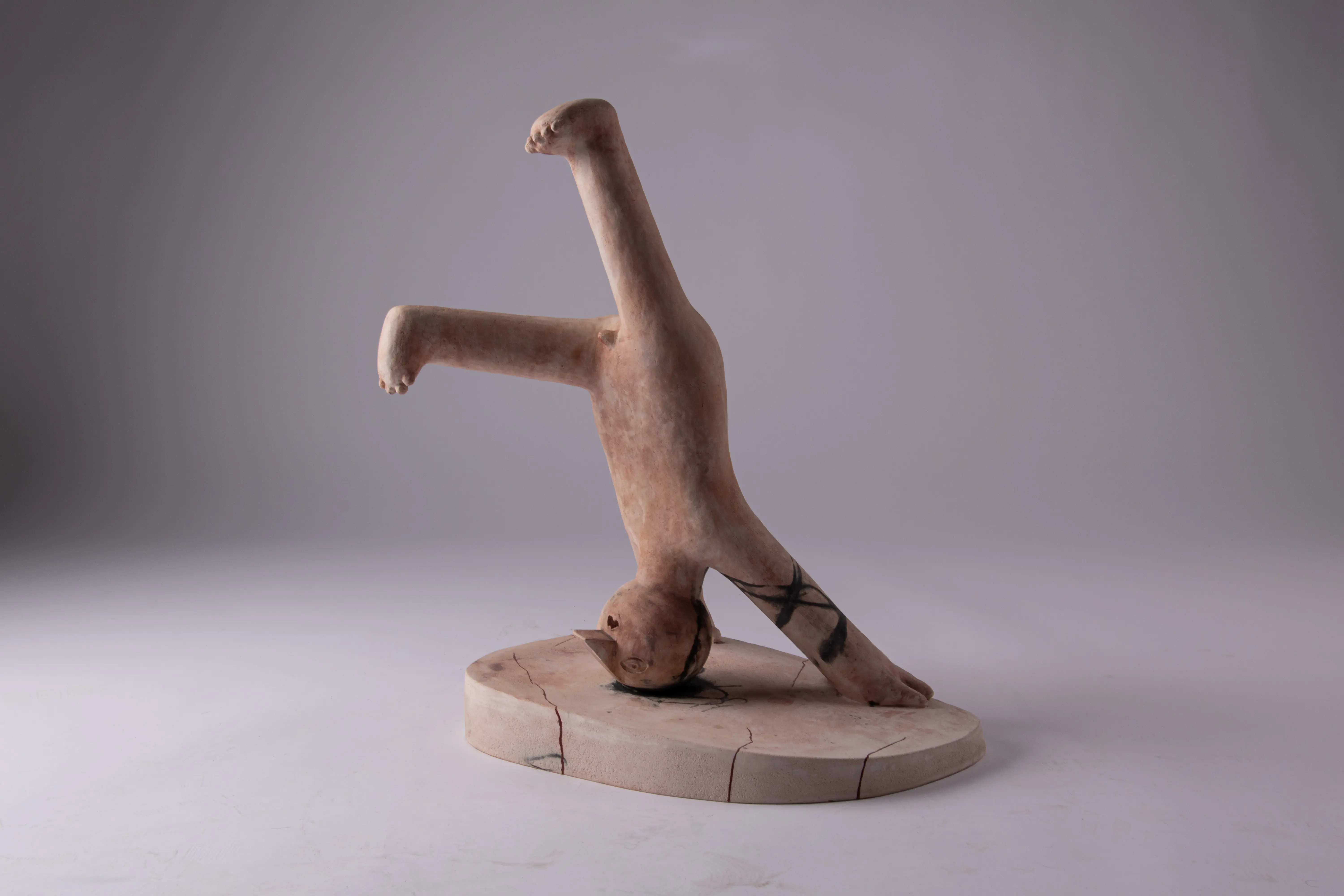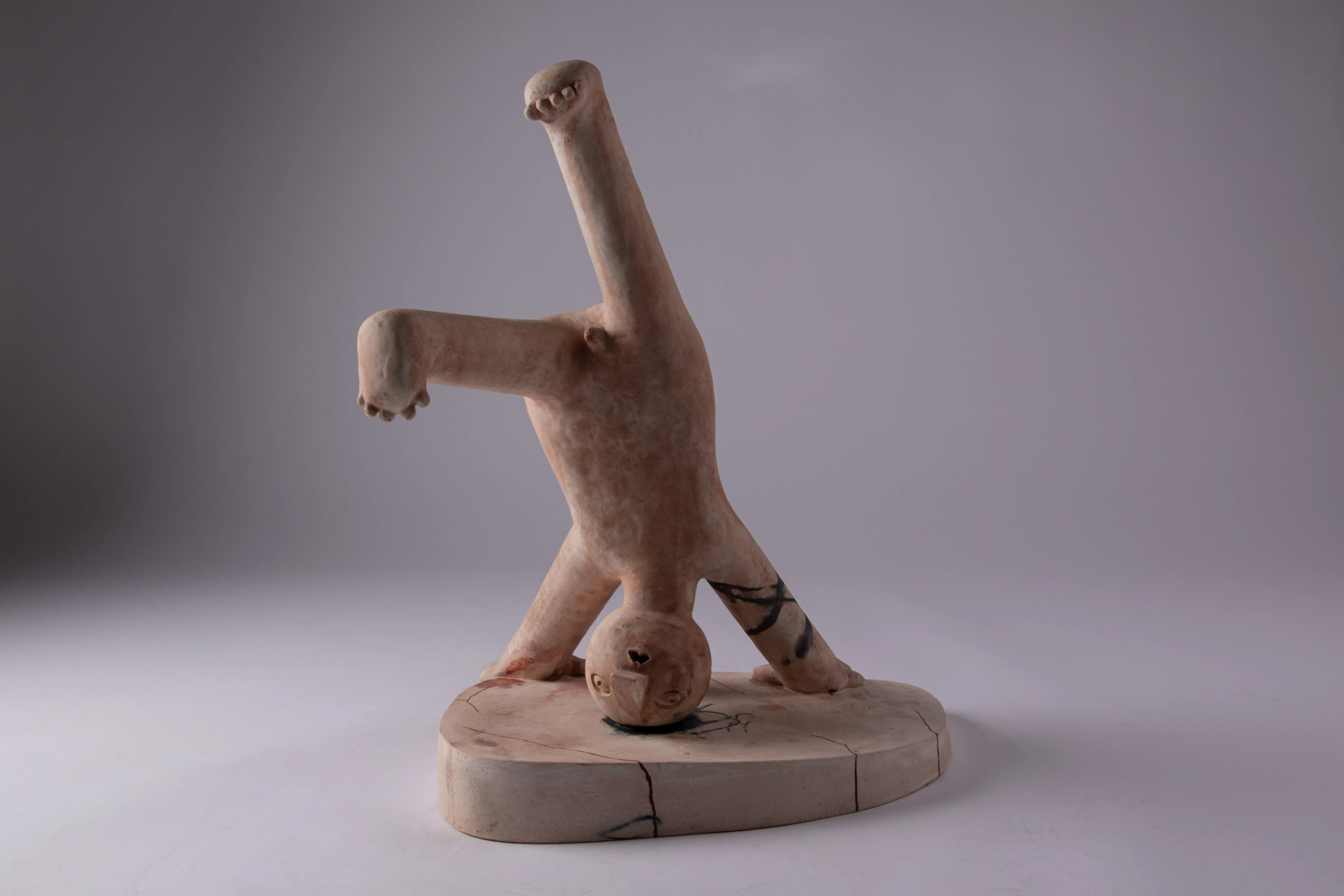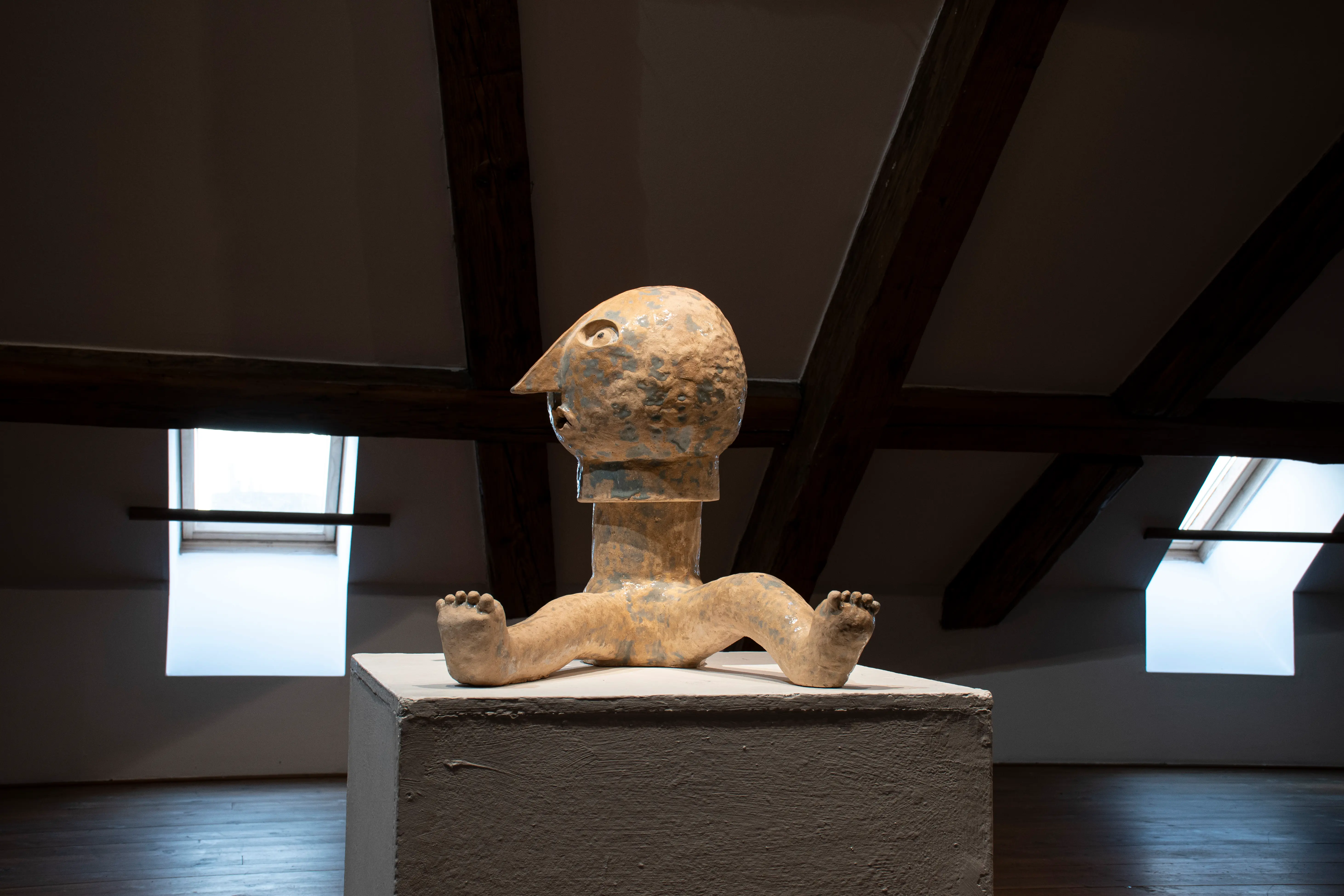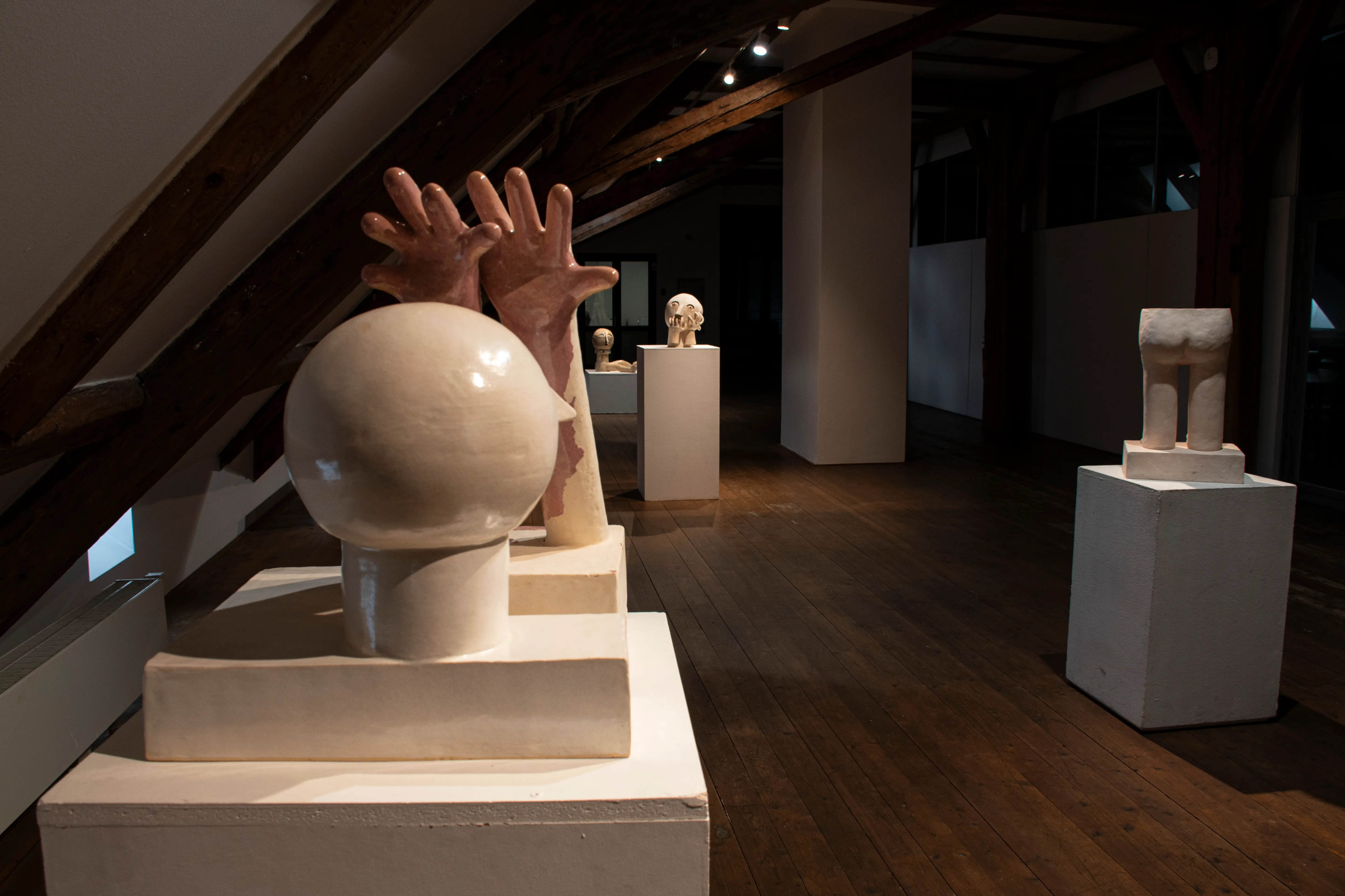 This series touches upon similar issues as the Innocents series, only that there is a transition from the surface to spatial expression. The main medium is ceramics, with works entering the space as separate sculptures. The concept is best defined by an early sculpture called Two-legged Being.