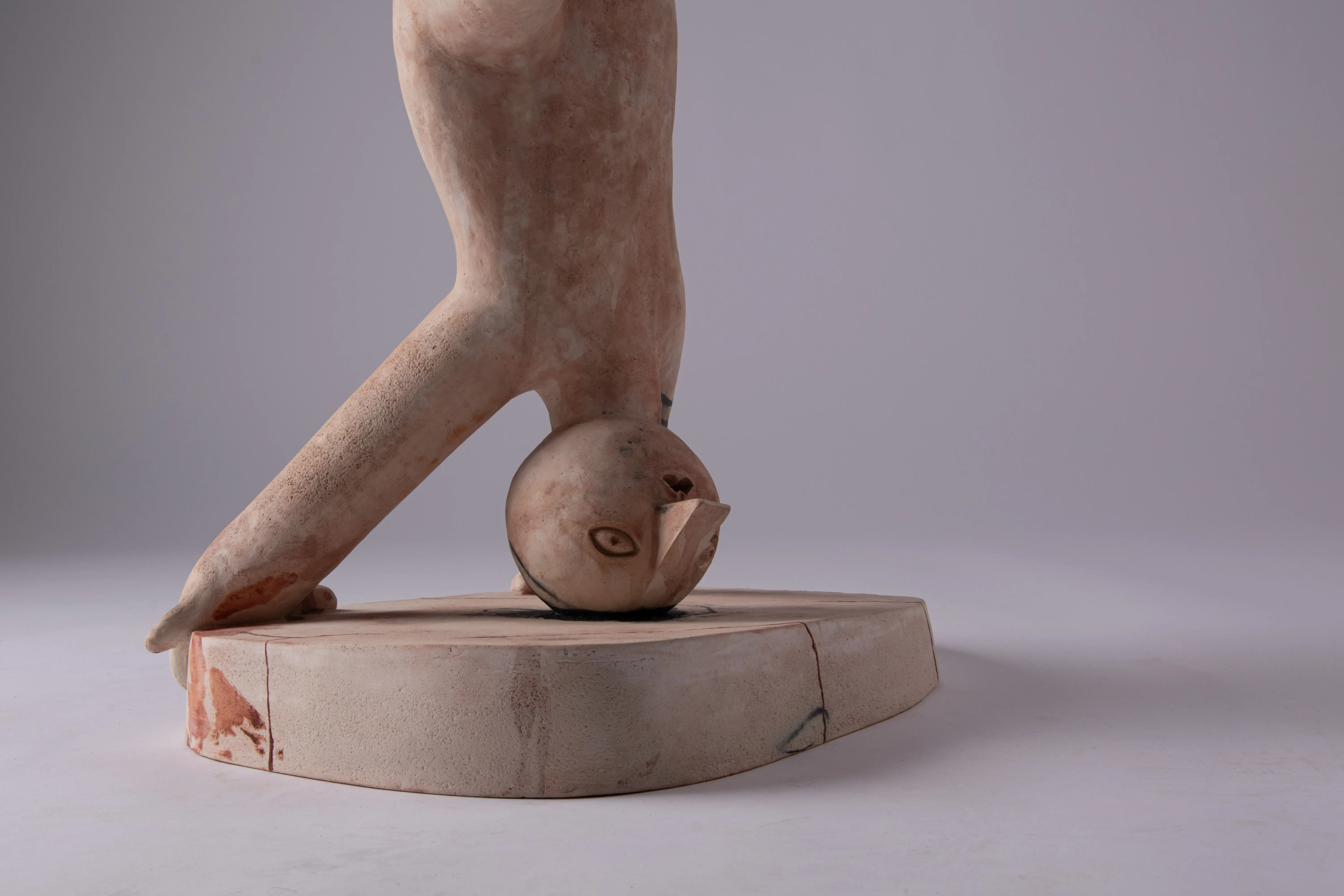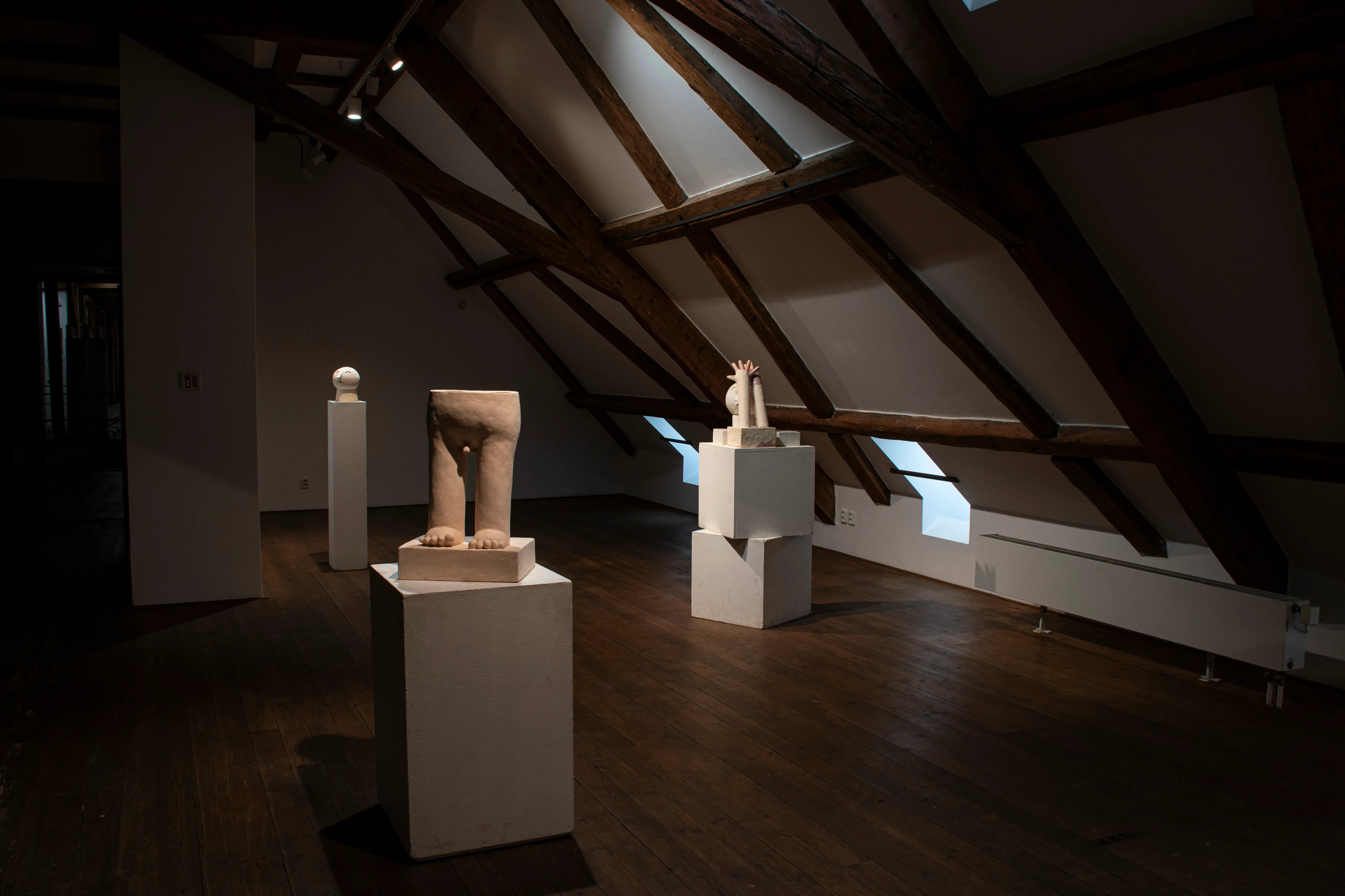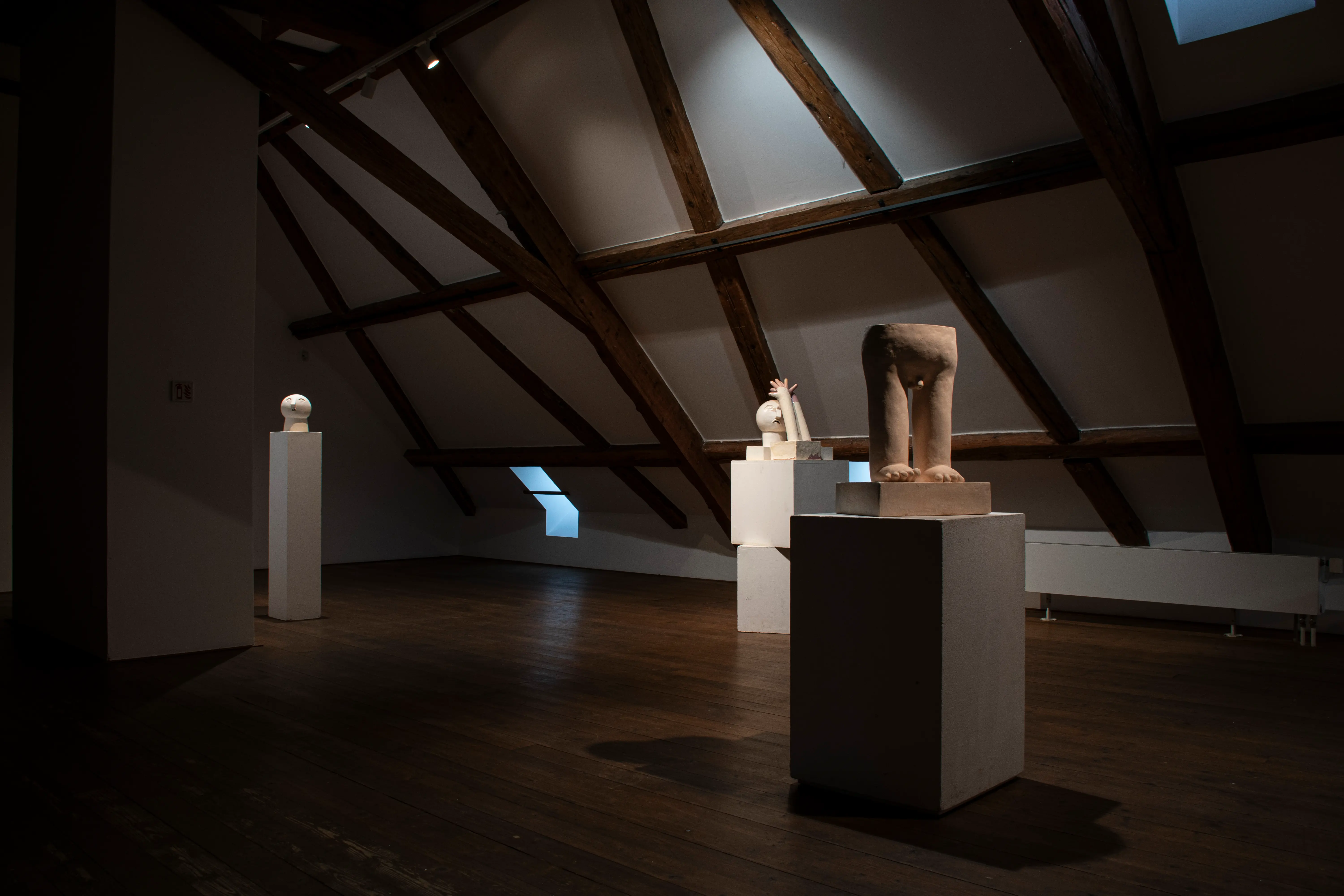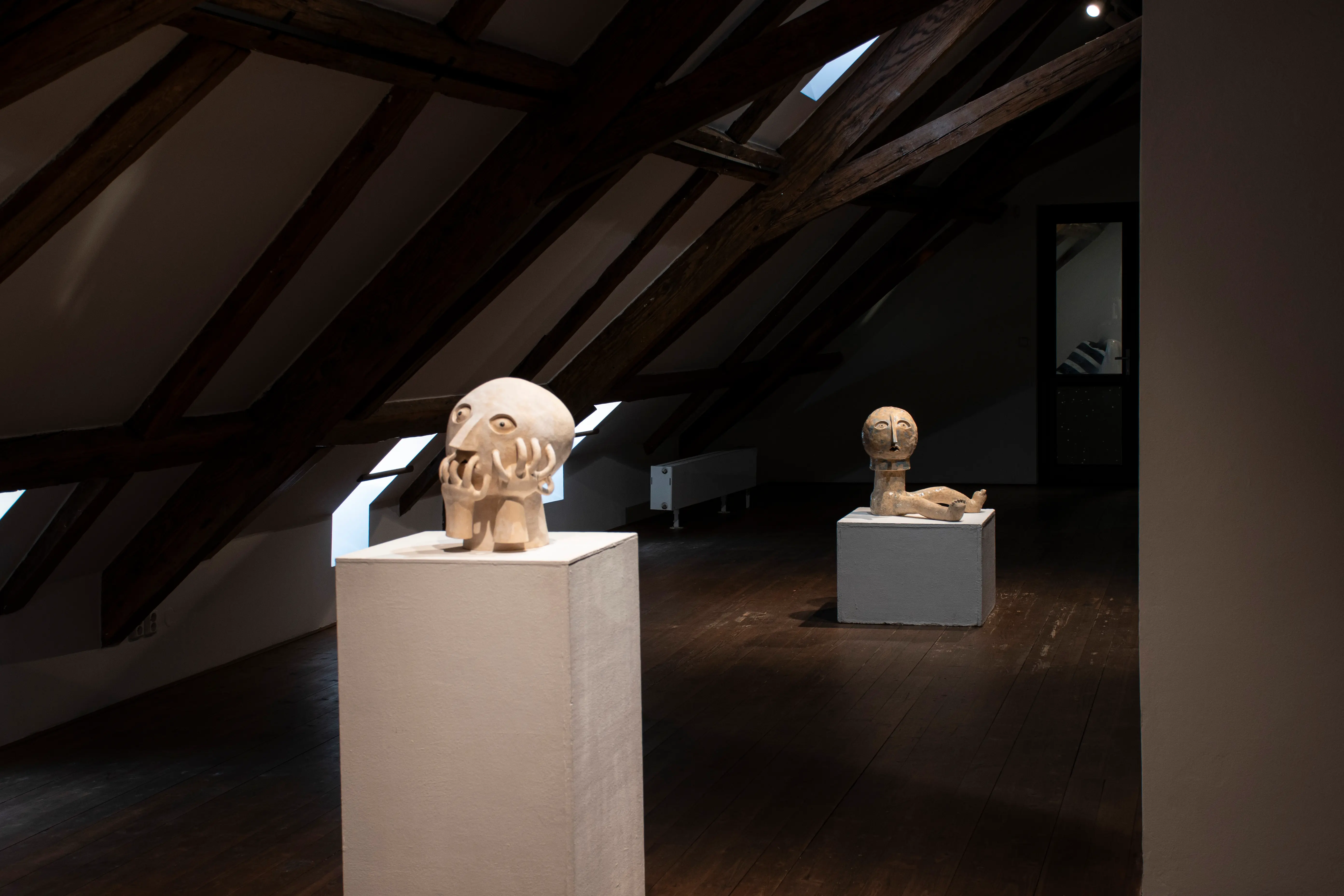 This series touches upon similar issues as the Innocents series, only that there is a transition from the surface to spatial expression. The main medium is ceramics, with works entering the space as separate sculptures. The concept is best defined by an early sculpture called Two-legged Being.