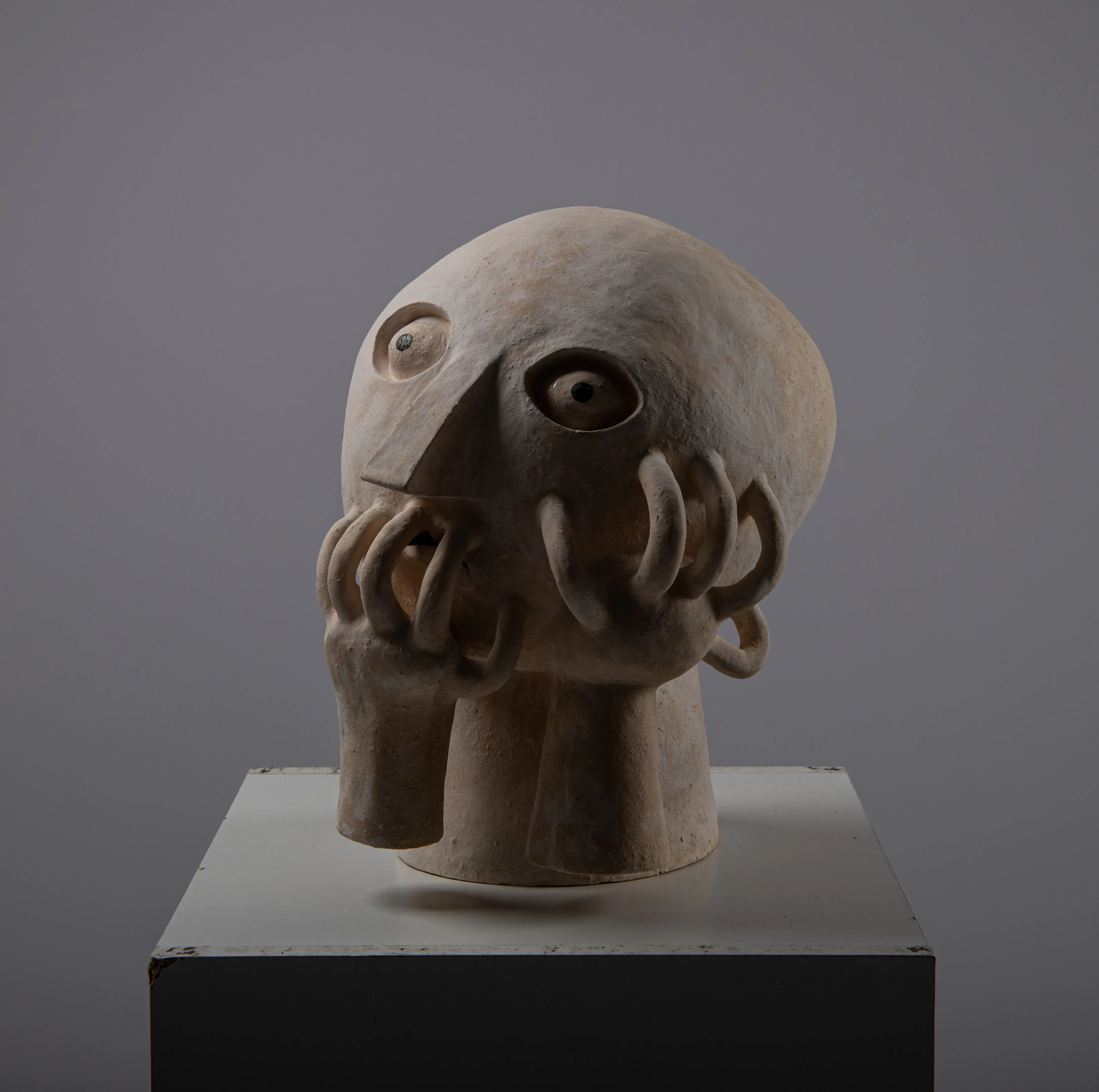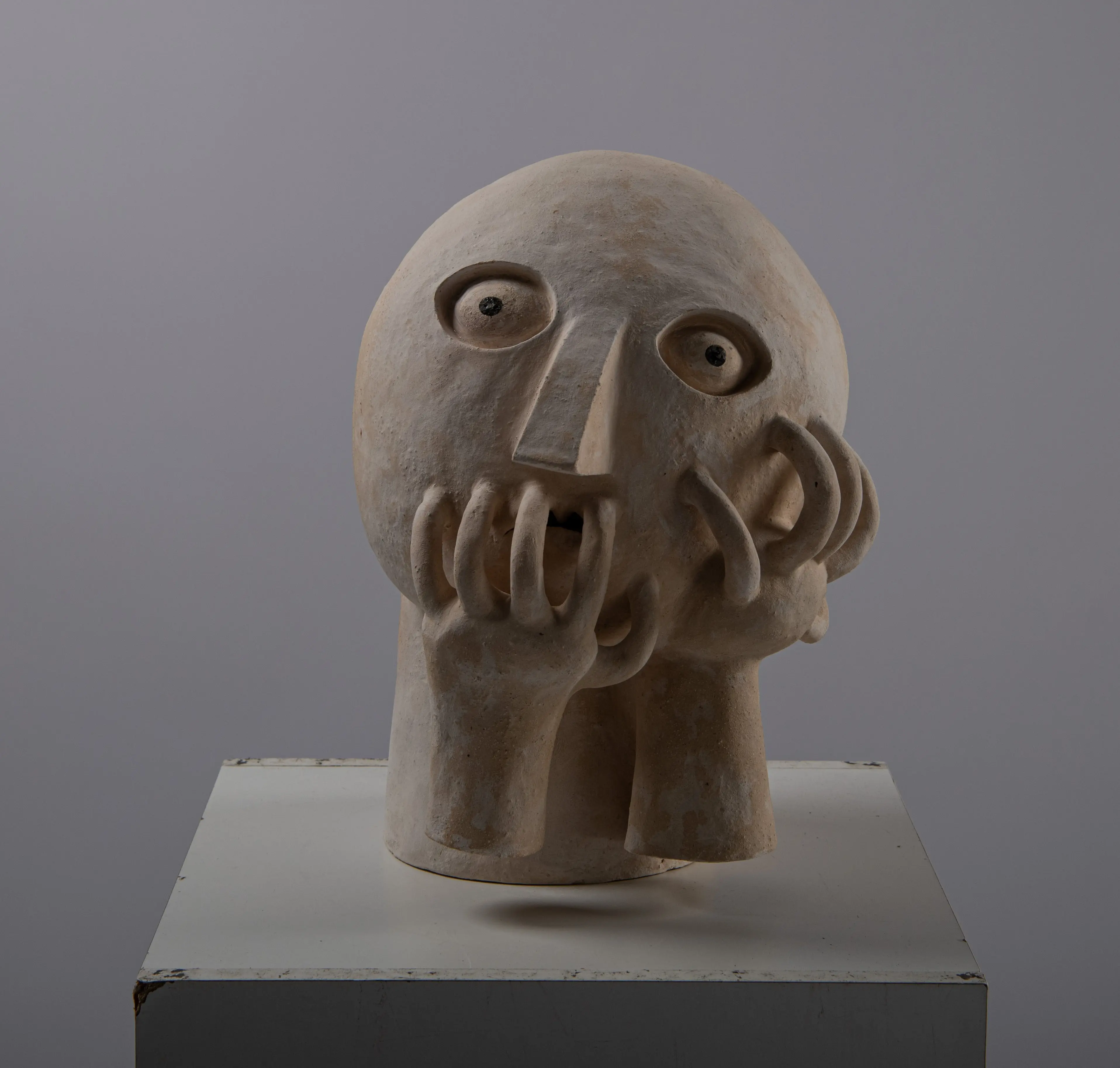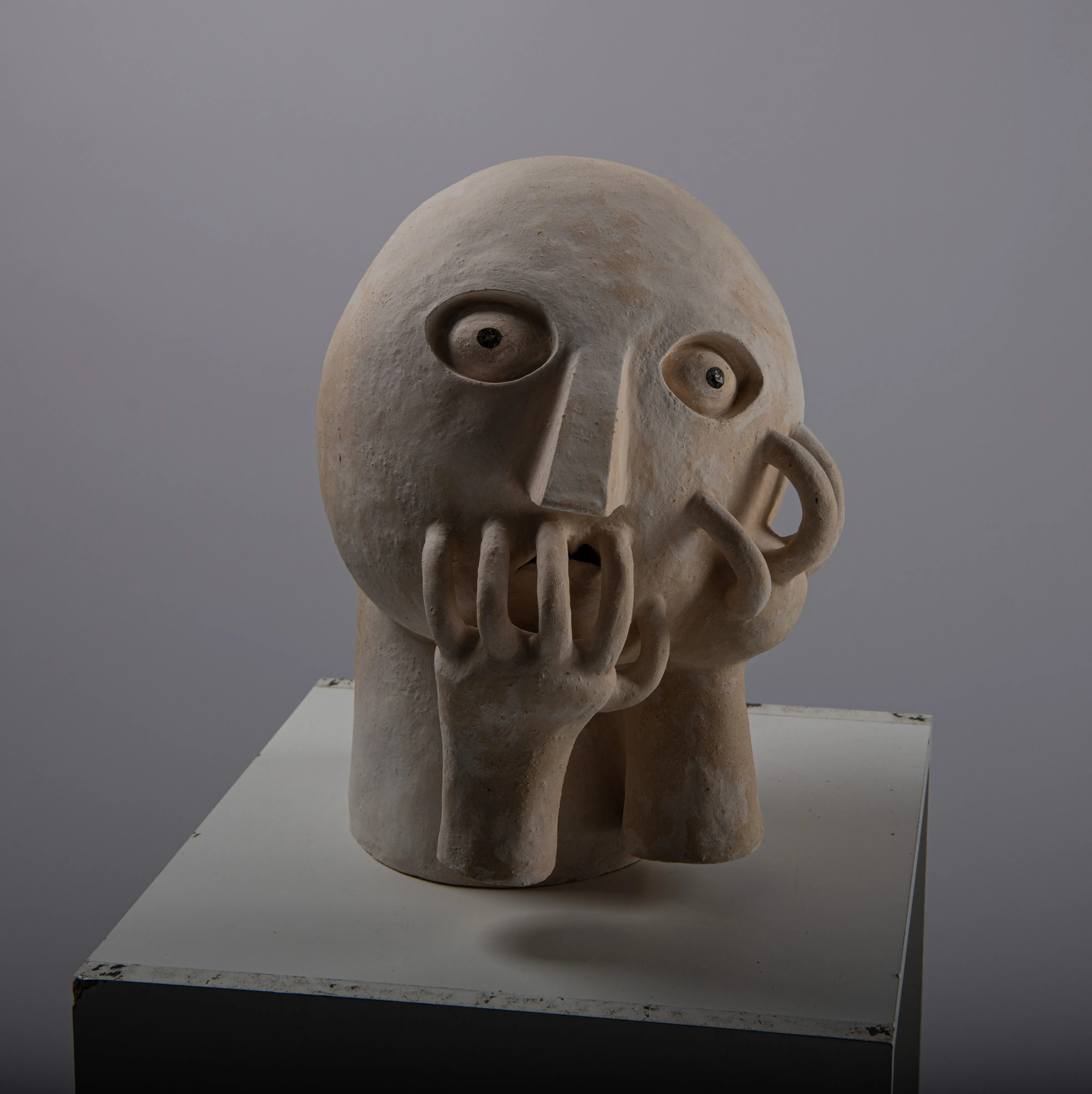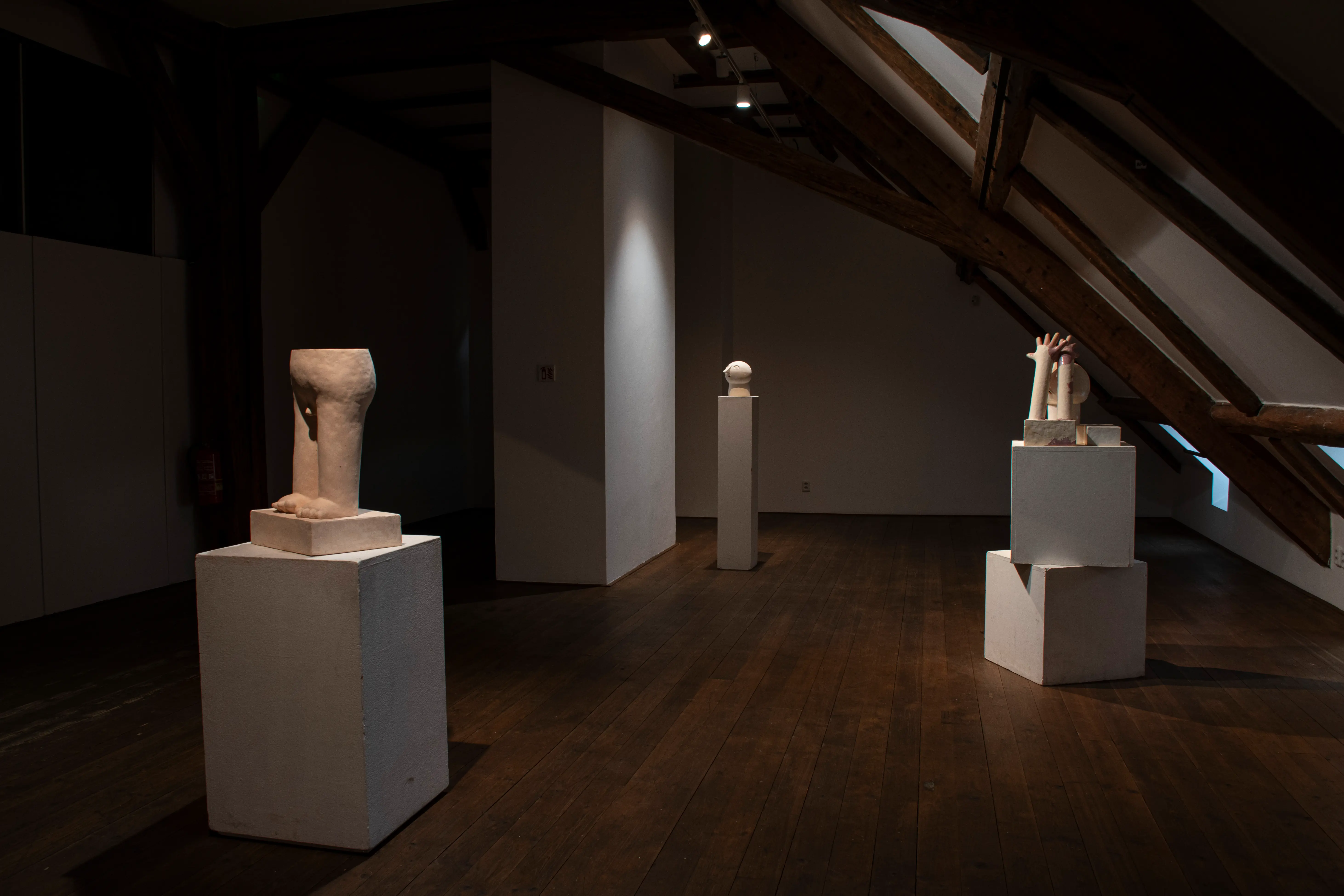This series touches upon similar issues as the Innocents series, only that there is a transition from the surface to spatial expression. The main medium is ceramics, with works entering the space as separate sculptures. The concept is best defined by an early sculpture called Two-legged Being.