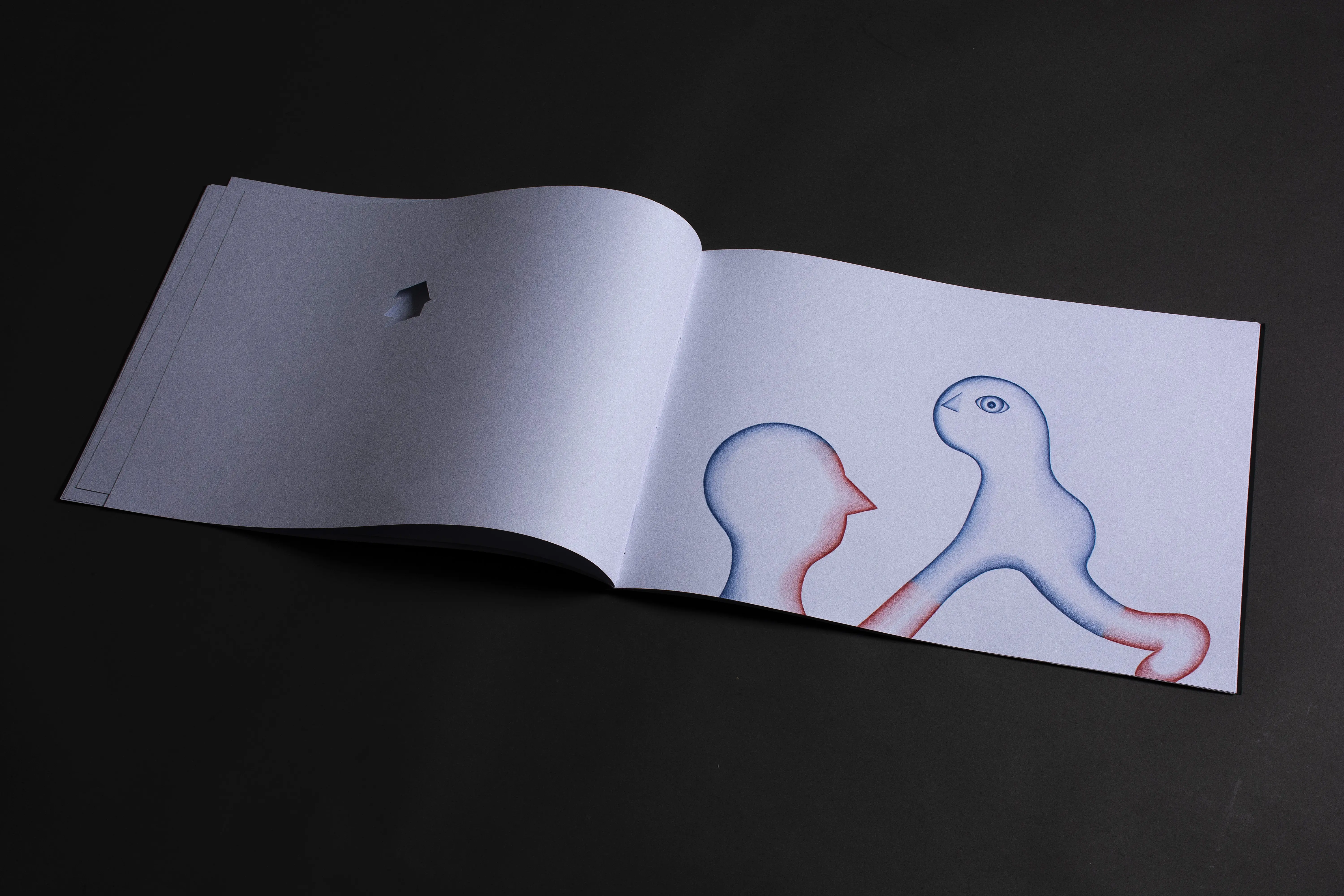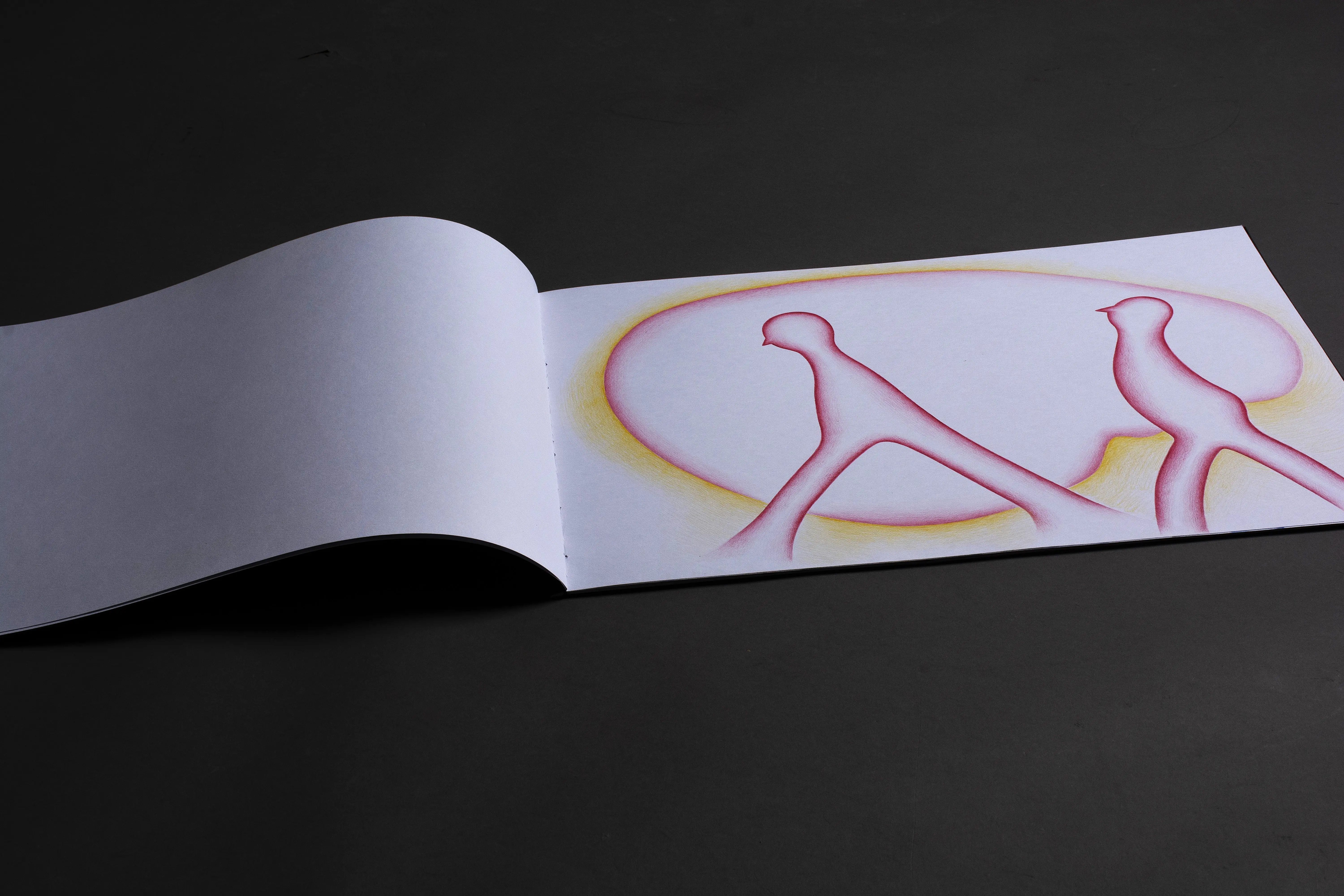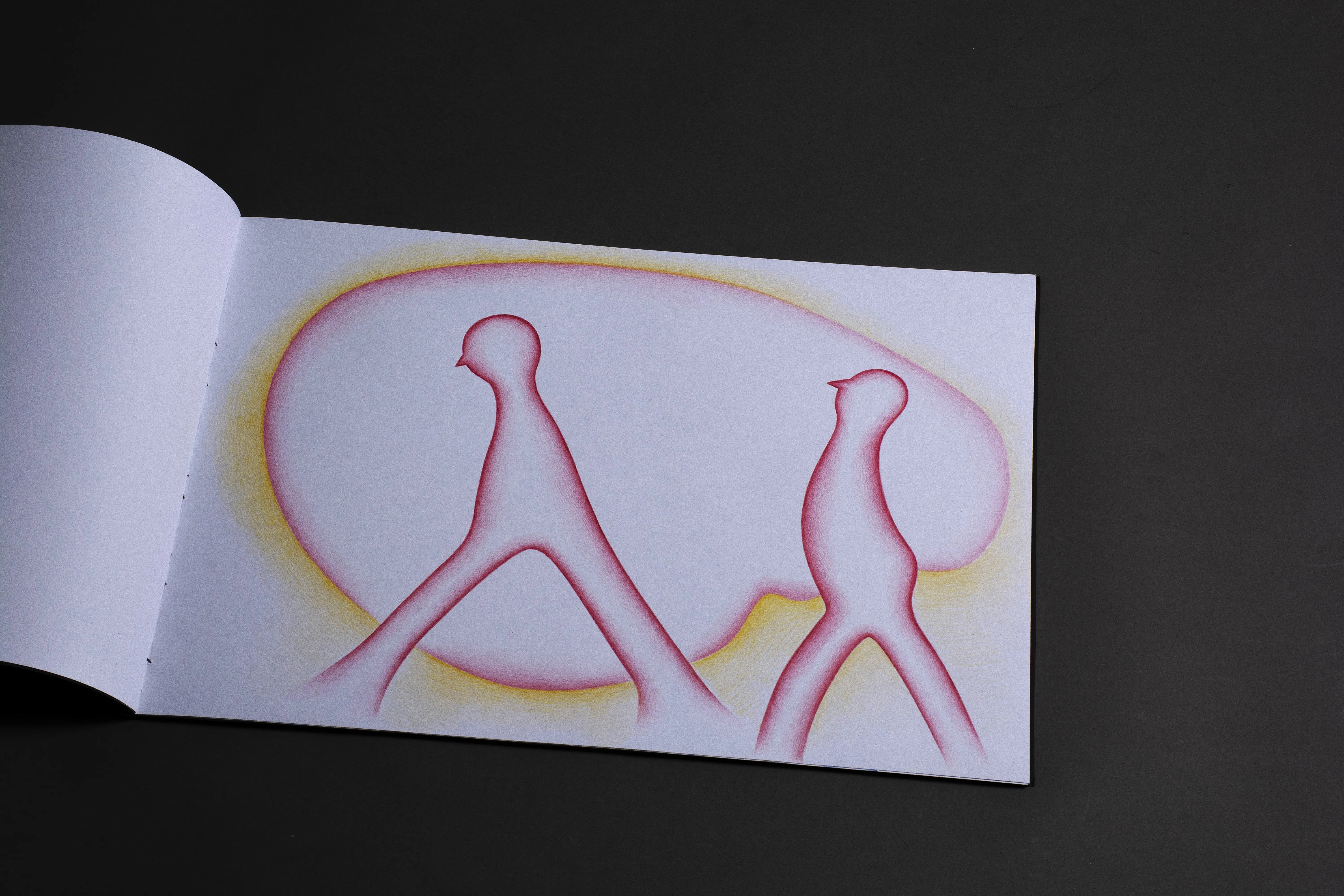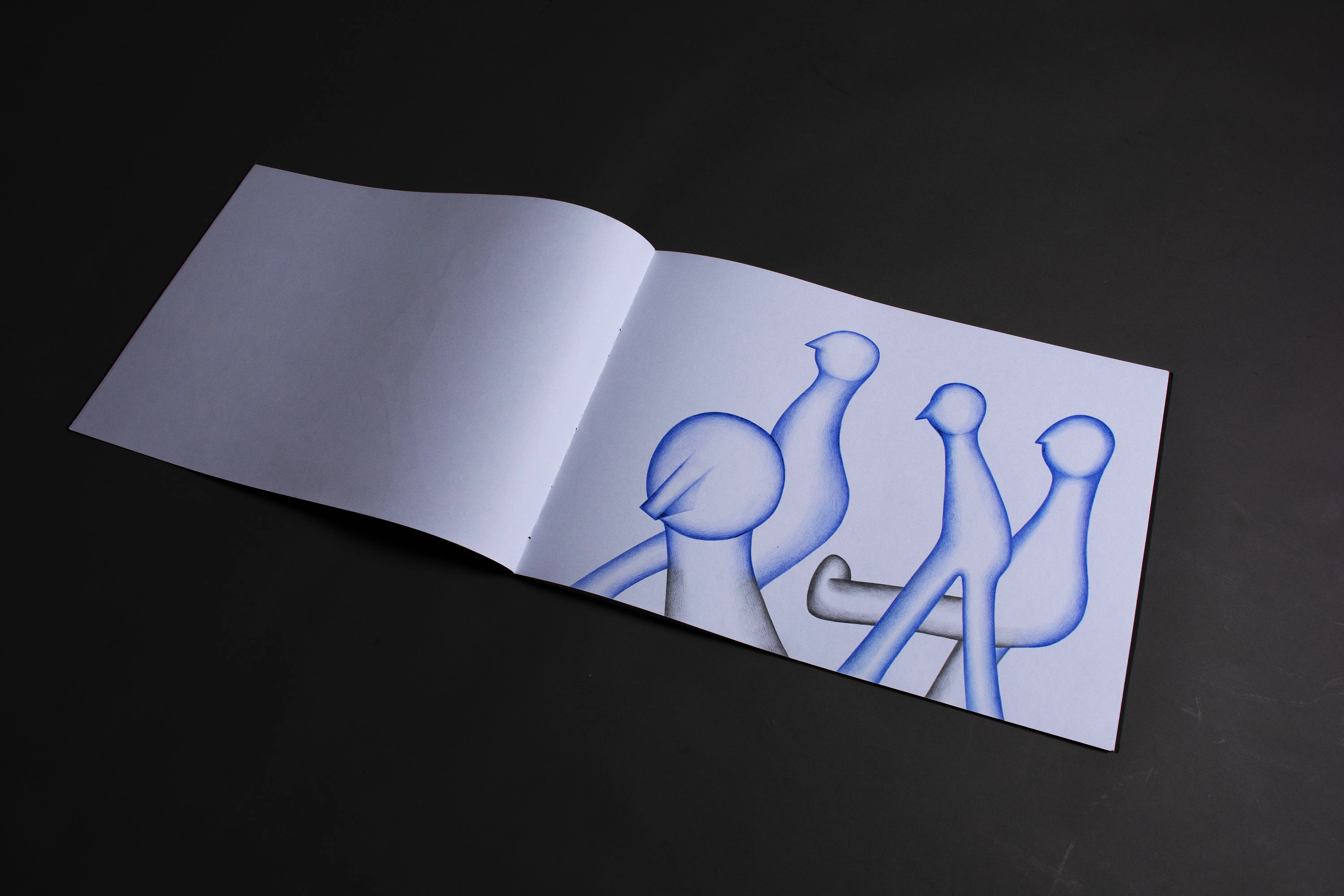 The fundamental inspiration for this artist's book was the performative video Catching the Wind. This performance, set in the open environment of infinite fields, became the key impulse for the book's creation. The landscape creates a dimension of infinity and continuity, in which the figures become carriers of action and the creative process itself. The stylization of the figures draws from the ceramic sculptures in the Balance on the Edge series. The principle of balance, tension, and fragile stability that becomes a connecting element between performance, sculpture, and intermedial expression.