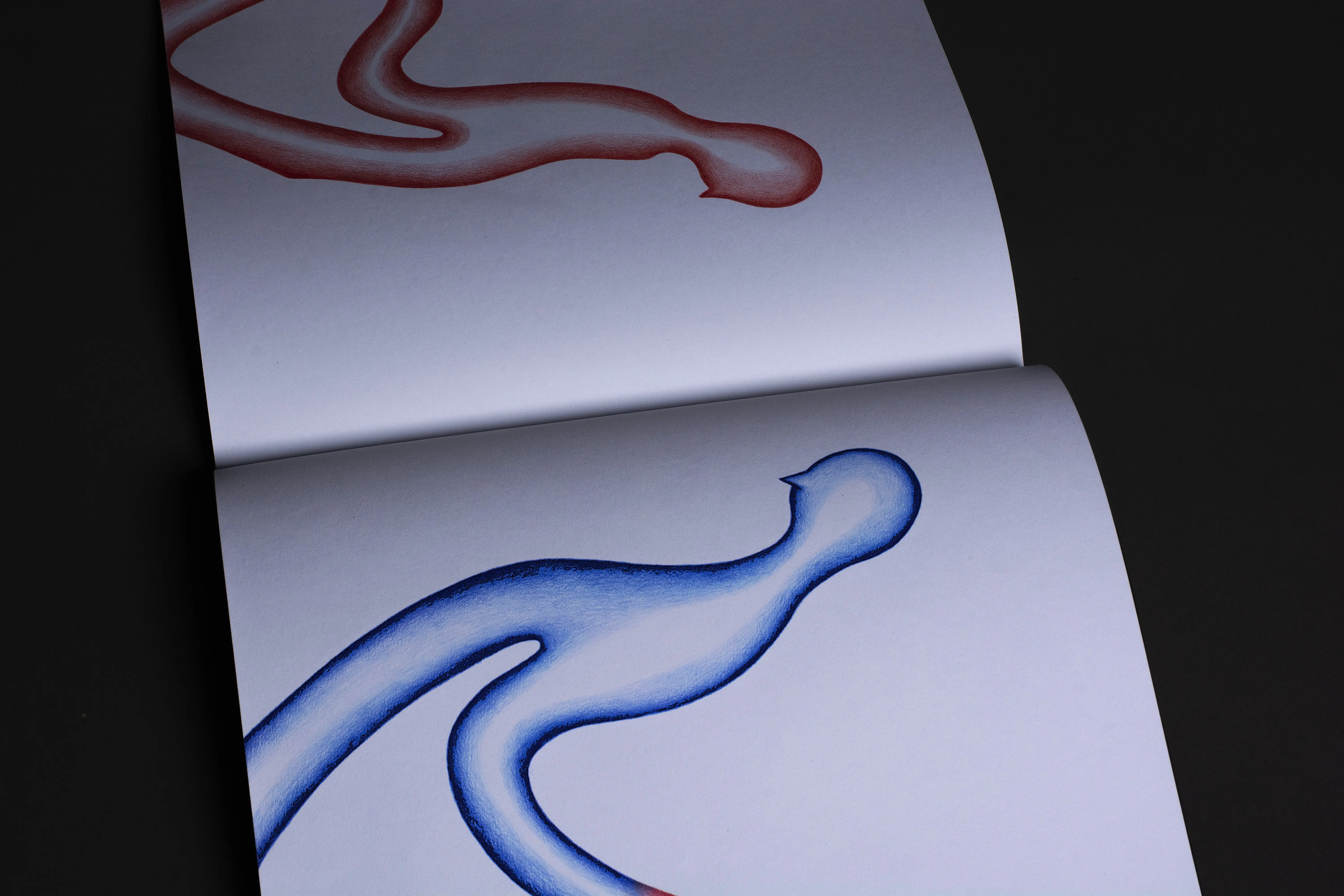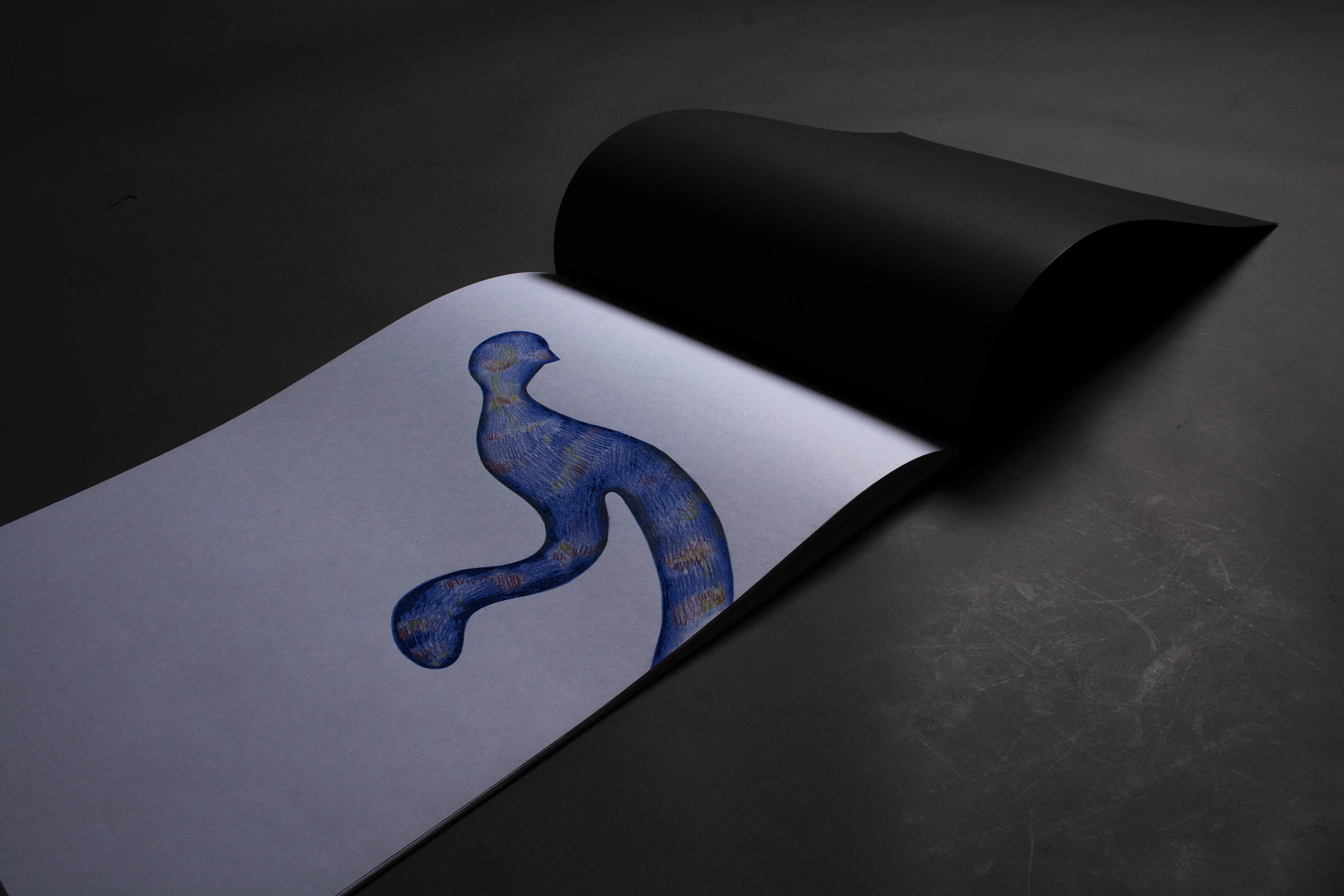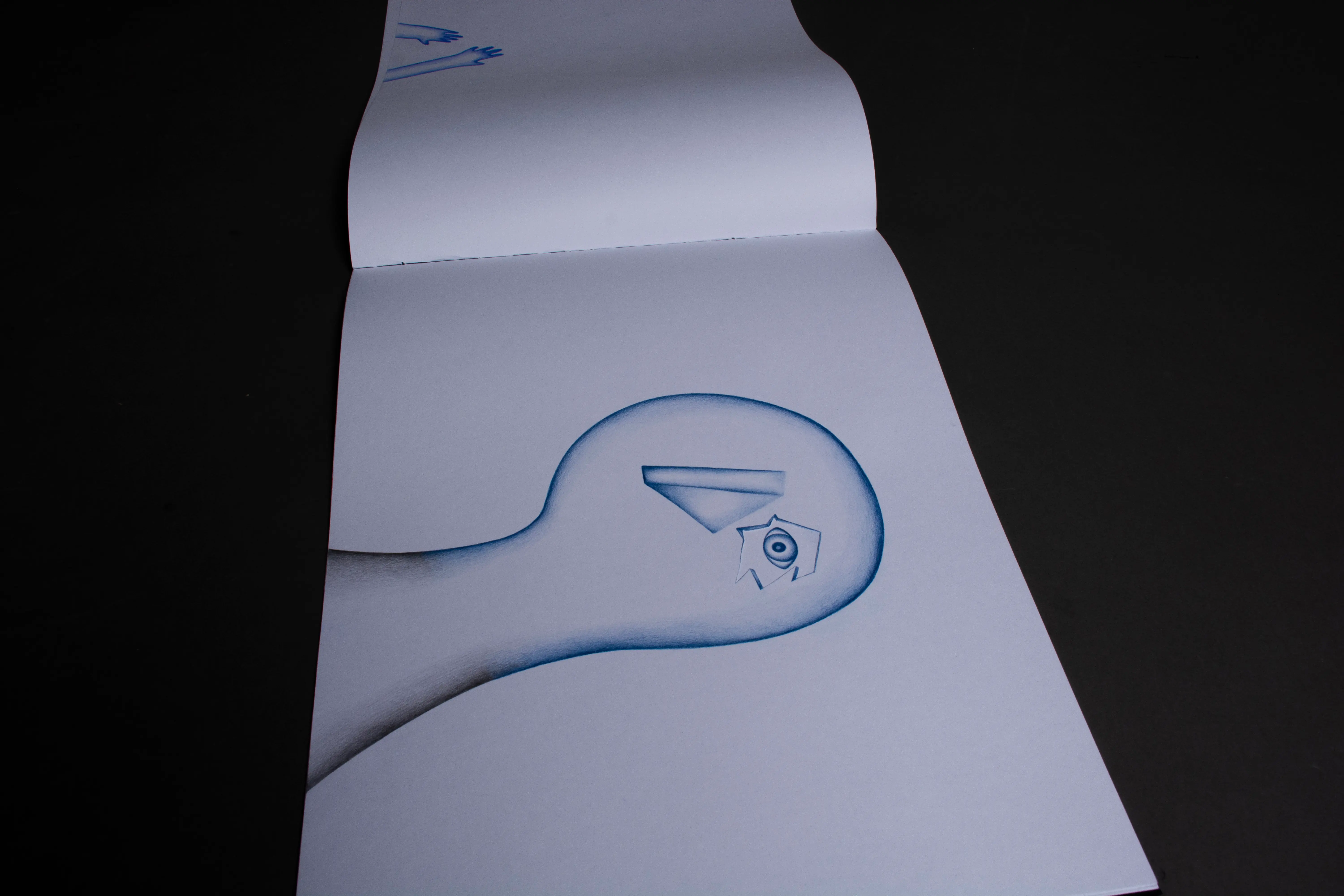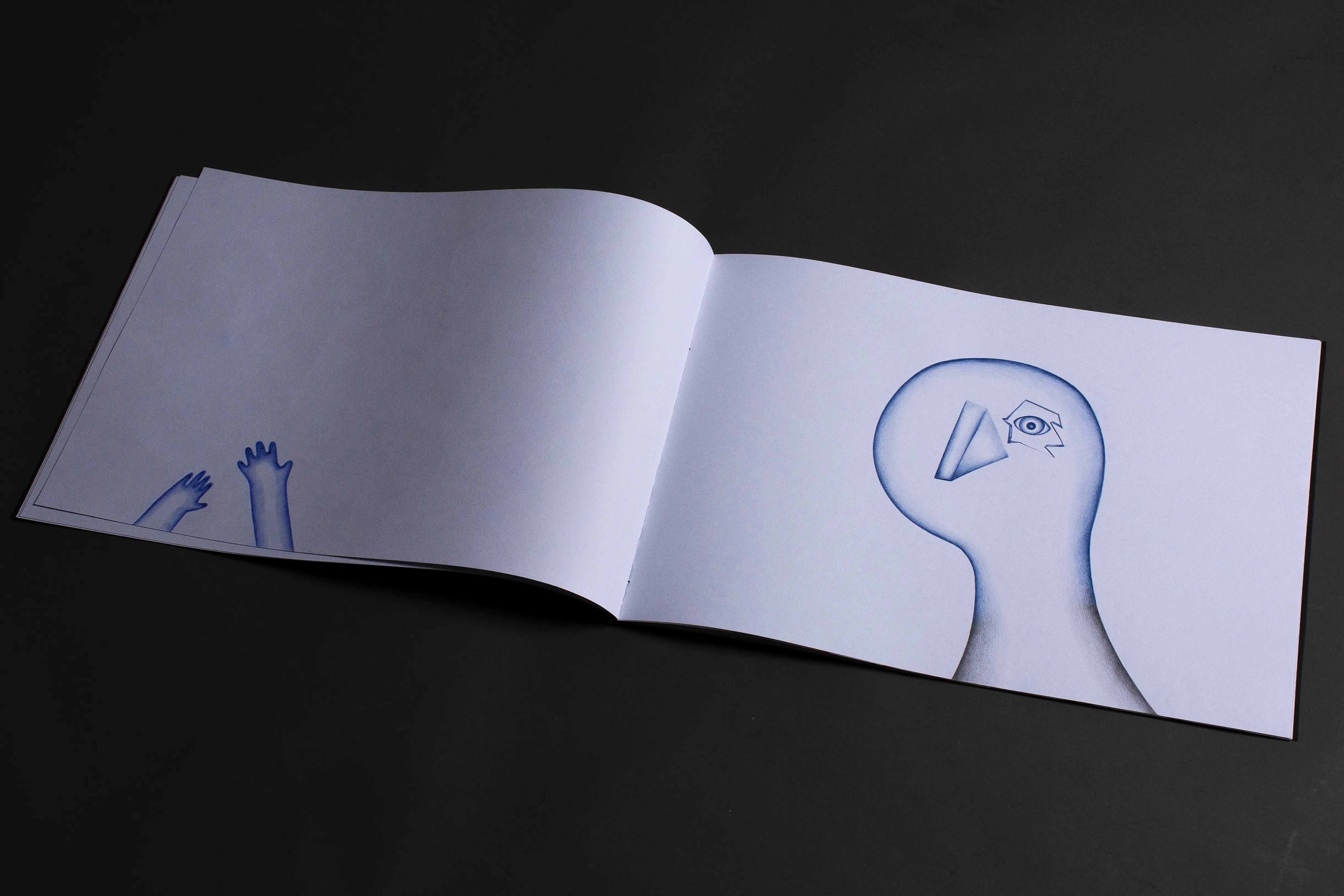 The fundamental inspiration for this artist's book was the performative video Catching the Wind. This performance, set in the open environment of infinite fields, became the key impulse for the book's creation. The landscape creates a dimension of infinity and continuity, in which the figures become carriers of action and the creative process itself. The stylization of the figures draws from the ceramic sculptures in the Balance on the Edge series. The principle of balance, tension, and fragile stability that becomes a connecting element between performance, sculpture, and intermedial expression.